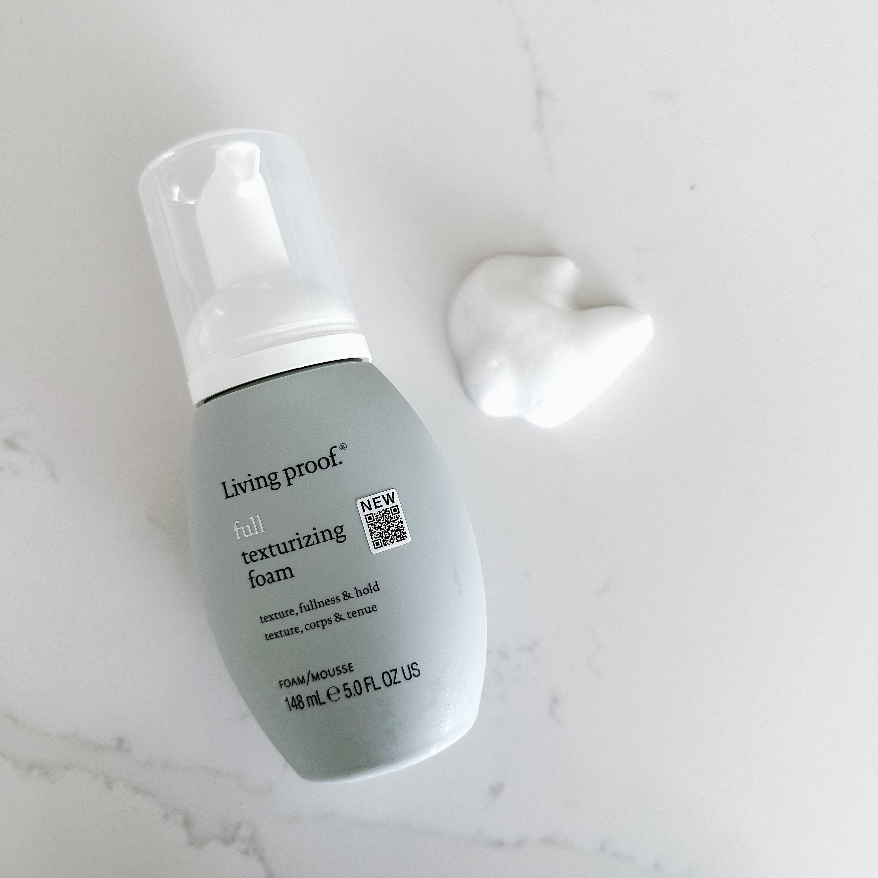 Last week I shared the new love of my life, the Dyson Airstrait. The Airstrait makes my hair so smooth that waves and curls I add in after with a wand don't last as long as they did when I would use a blowdryer. This might sound like a con for the Airstrait, but I don't see it as one because frizz is always my number one battle with my hair. With my hair's natural texture smoothed out I need to add a little texture back in with product to get longevity again. At Sephora I picked up Living Proof's Texturizing Foam to try out.